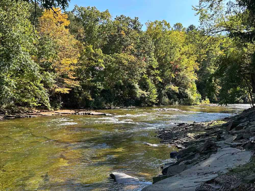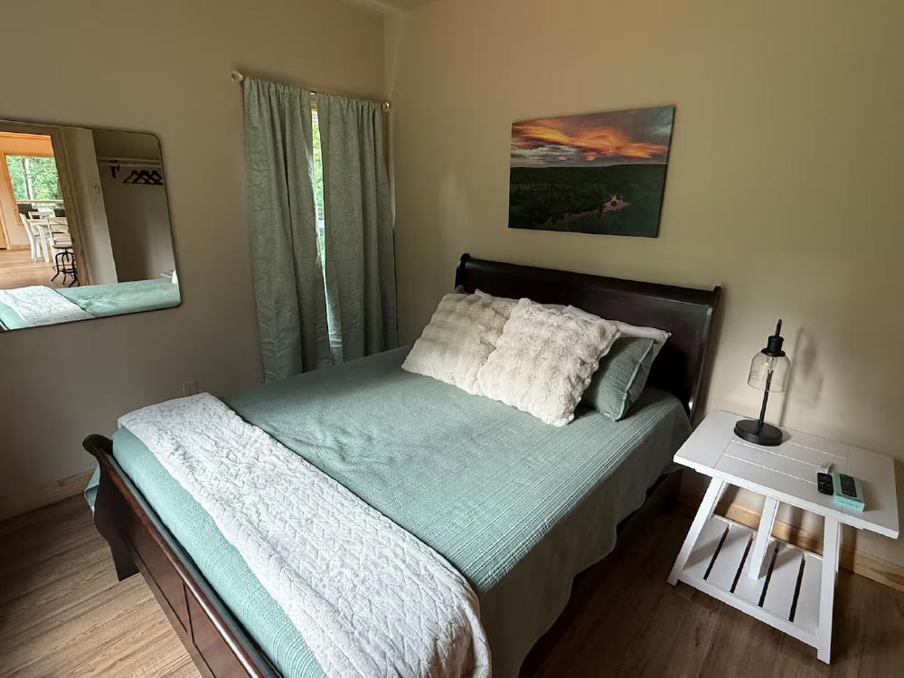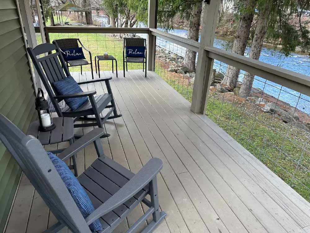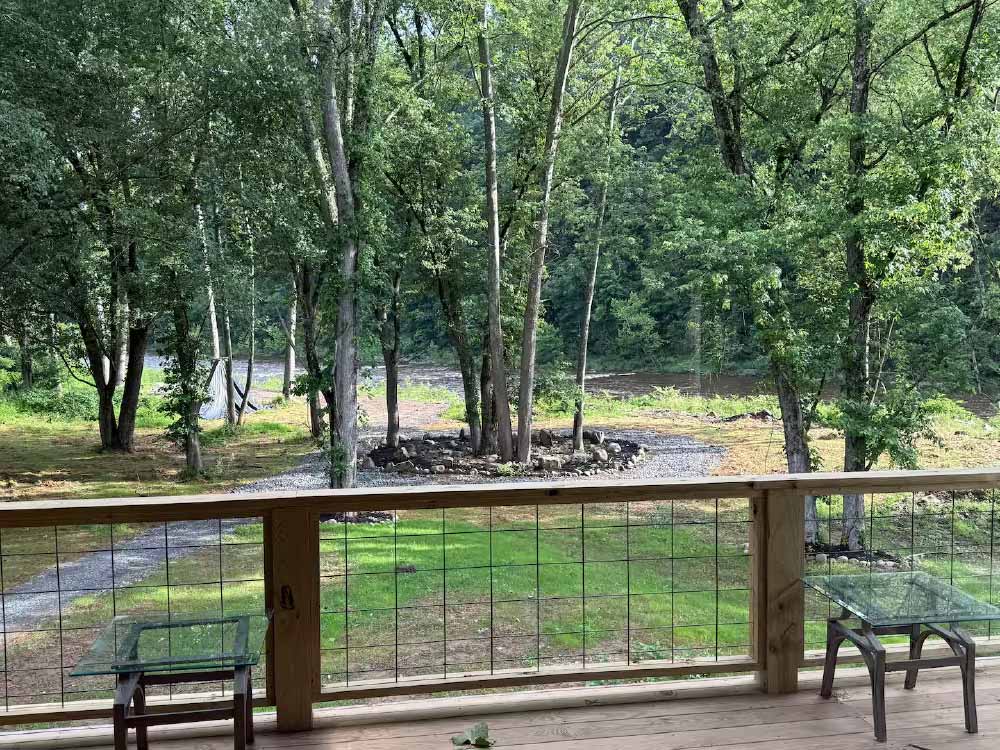 Located right on the river with lots of room between the cabin and river for you to lounge out in the sun and play in the water.